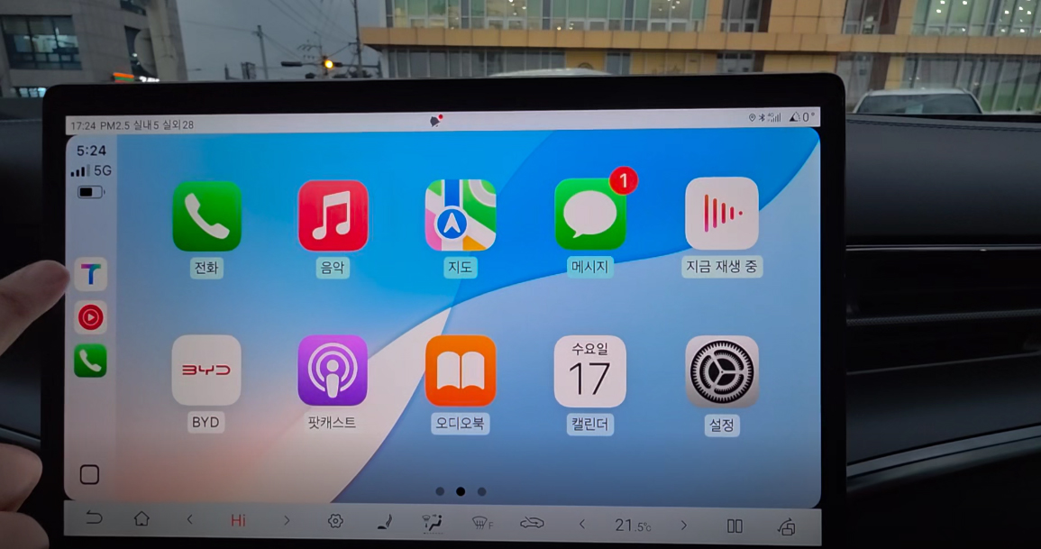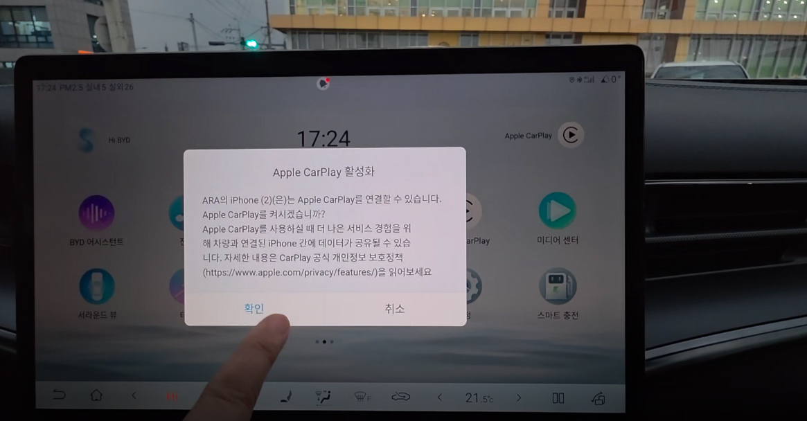 ⑤ 무선 연결 완료 - 잠시 후 차량 화면에 CarPlay / Android Auto 화면이 자동 실행됩니다.