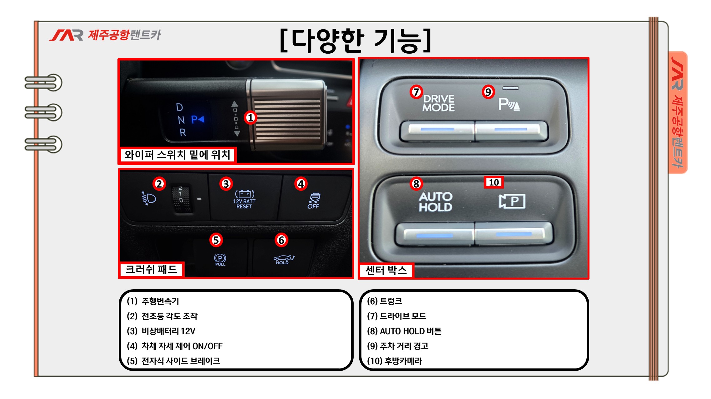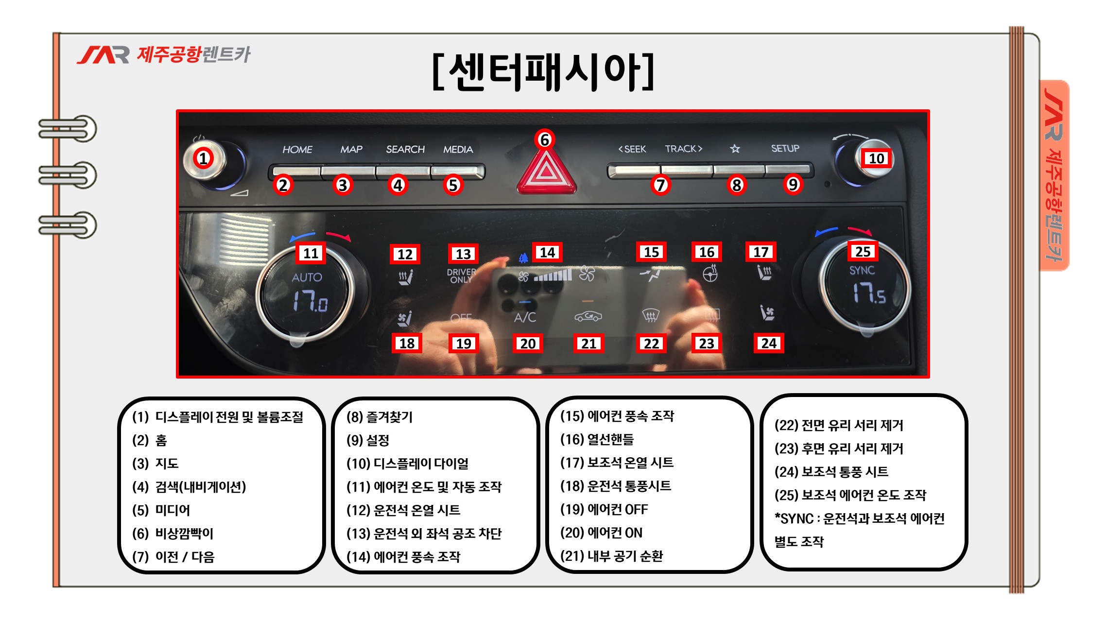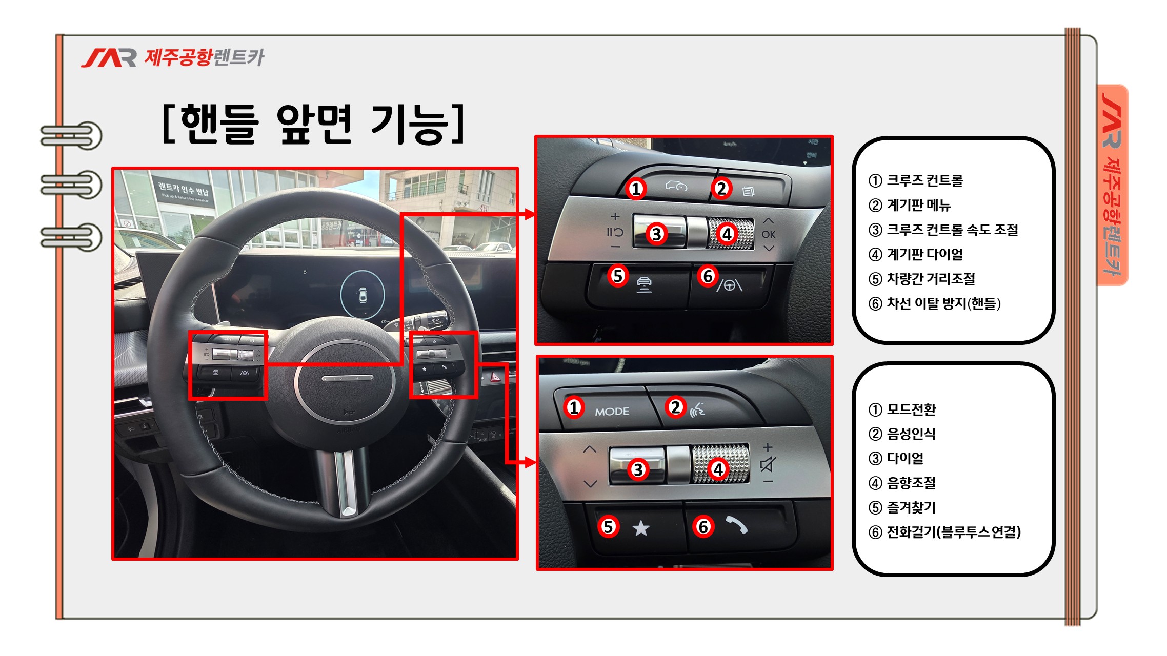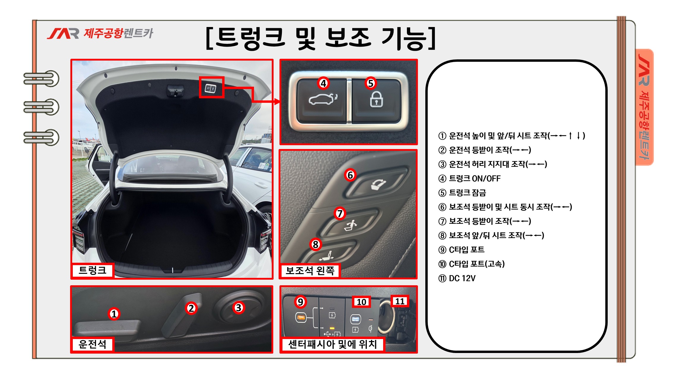 운전석 시스템 - 공조, 블루투스, USB-C, 12V, 터치스크린, 핸들열선, 앞좌석열선&통풍시트, 음성인식 등