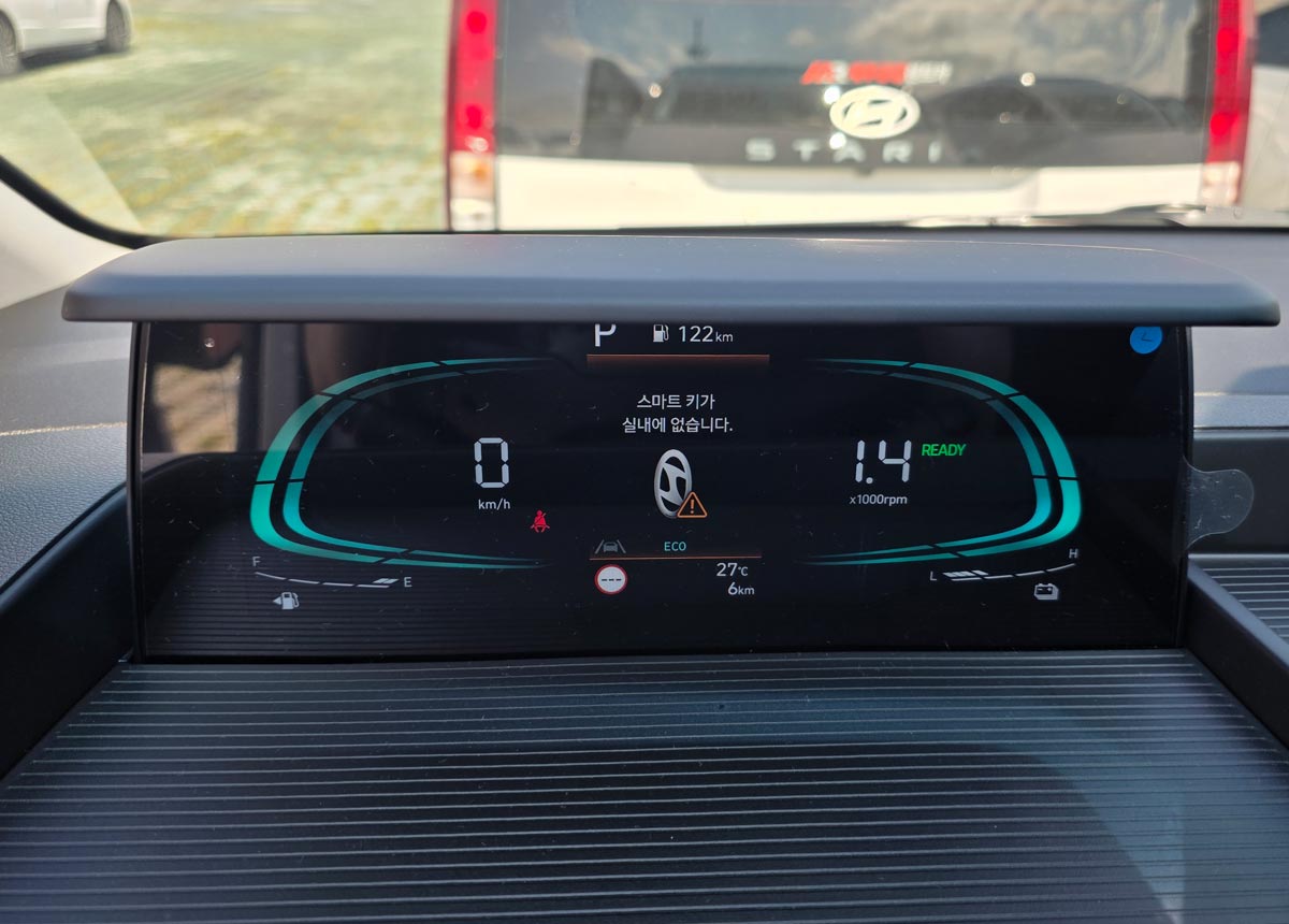 스타리아는 계기판 부분이 운전대 앞쪽으로 독립된 스크린으로 디스플레이 되어 있습니다.
