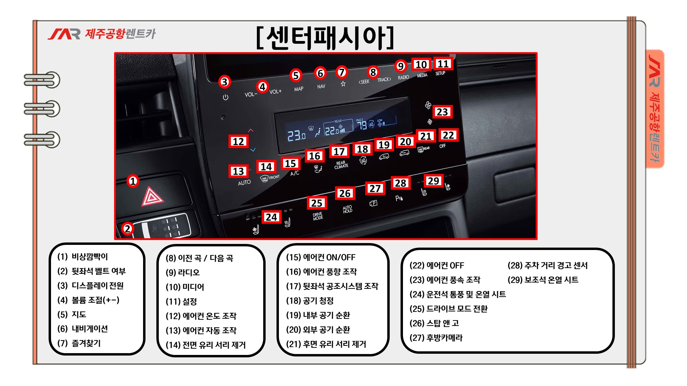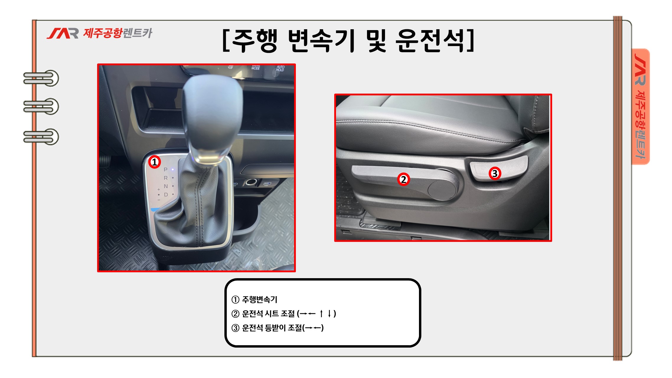 운전석 시스템 - 앞좌석 열선시트, 기어봉, USB-C, 내비, 12v 포트