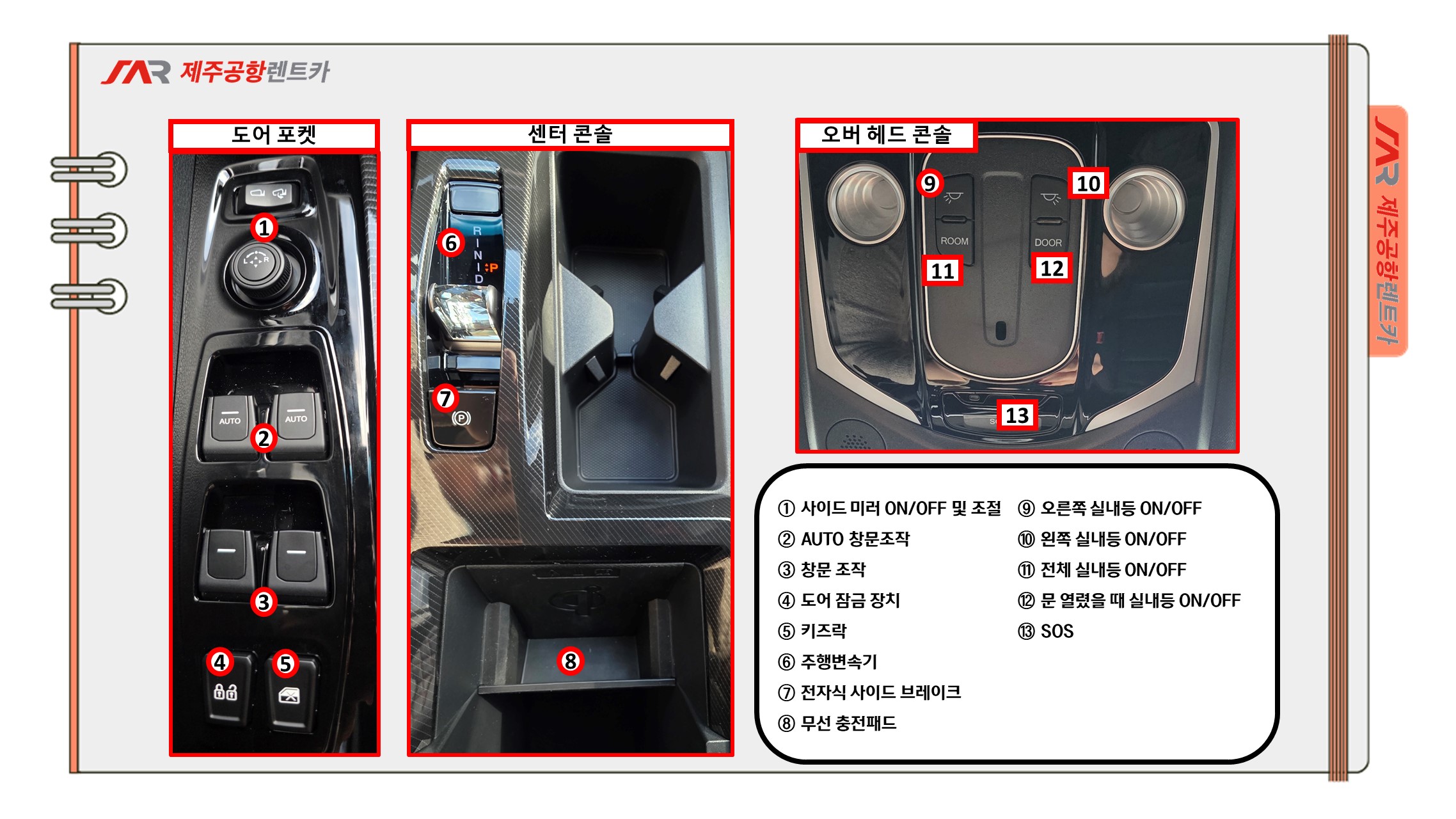 금연차, 앞좌석 열선 & 통풍 시트, 핸들열선, 전후방센서, 전방충돌 경고, 차선이탈 방지, 후방카메라, 후방에어컨, 블루투스, USB-C, 스마트키, 에어백, 음성인식, 기본썬팅