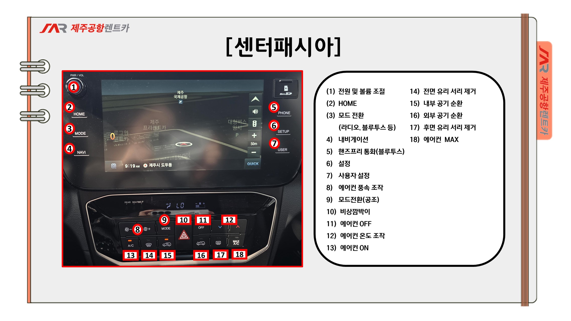 운전석 시스템 - 공조, 블루투스, USB, 터치스크린, 핸들열선, 앞좌석열선시트, 음성인식 등