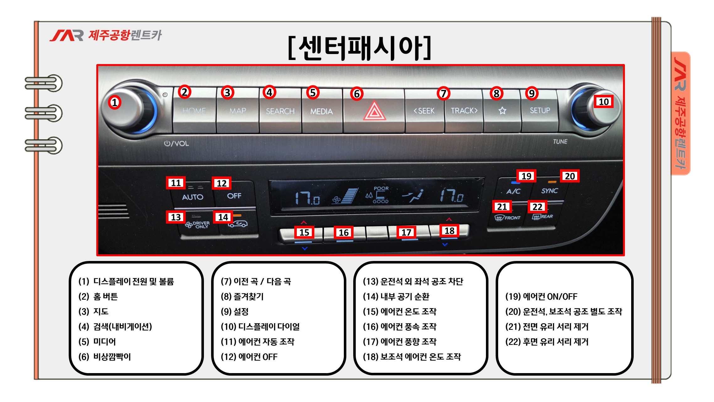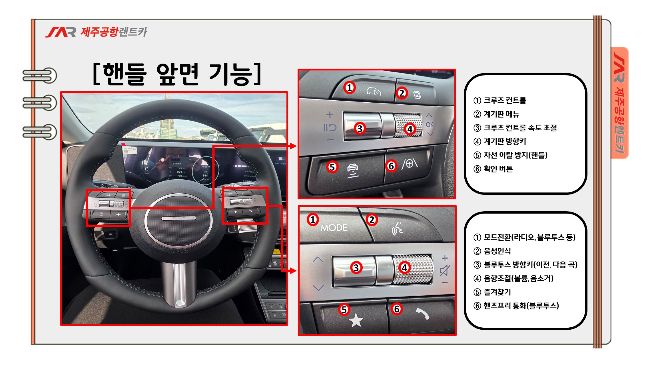 운전석 시스템 - 공조, 블루투스, USB-C, 12V, 터치스크린, 핸들열선, 앞좌석열선&통풍시트, 음성인식 등